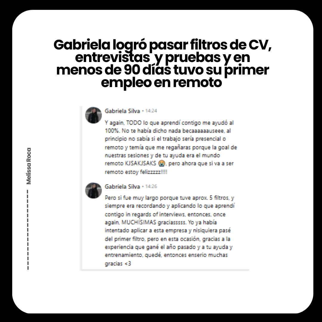 ✔️ Buscas destacar en remoto sin incertidumbre con una guía 100% probada y validada para que muestres tu conocimiento y experiencia y no sea una pesadilla pasar filtros de talento humano.