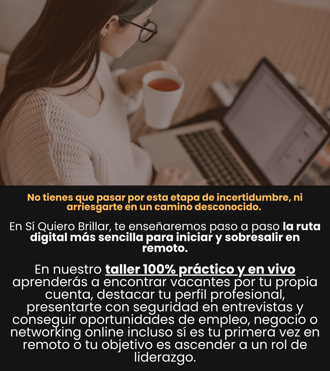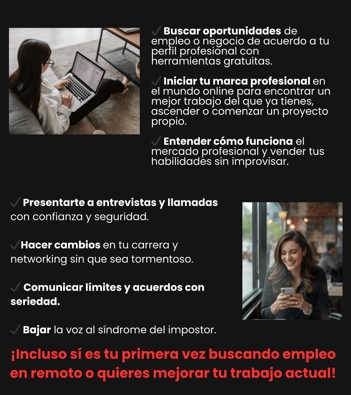 ✅Herramientas de autoconocimiento para reafirmar tus fortalezas, elevar tu mentalidad de éxito y cultivar hábitos de autocuidado y seguridad en el trabajo remoto.