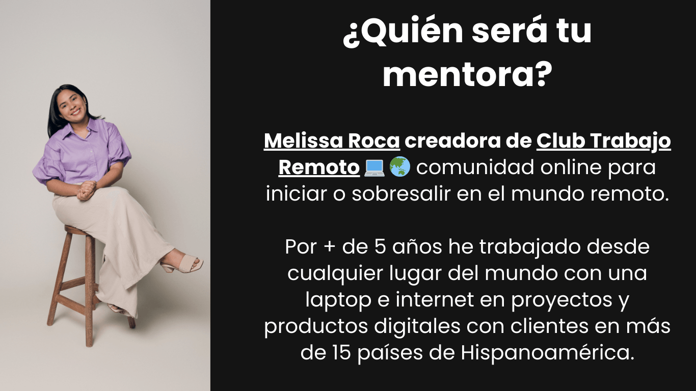 Te acompaño a iniciar y sobresalir en remoto para que te postules a oportunidades globales y trabajes desde cualquier lugar del mundo de forma segura y a largo plazo.